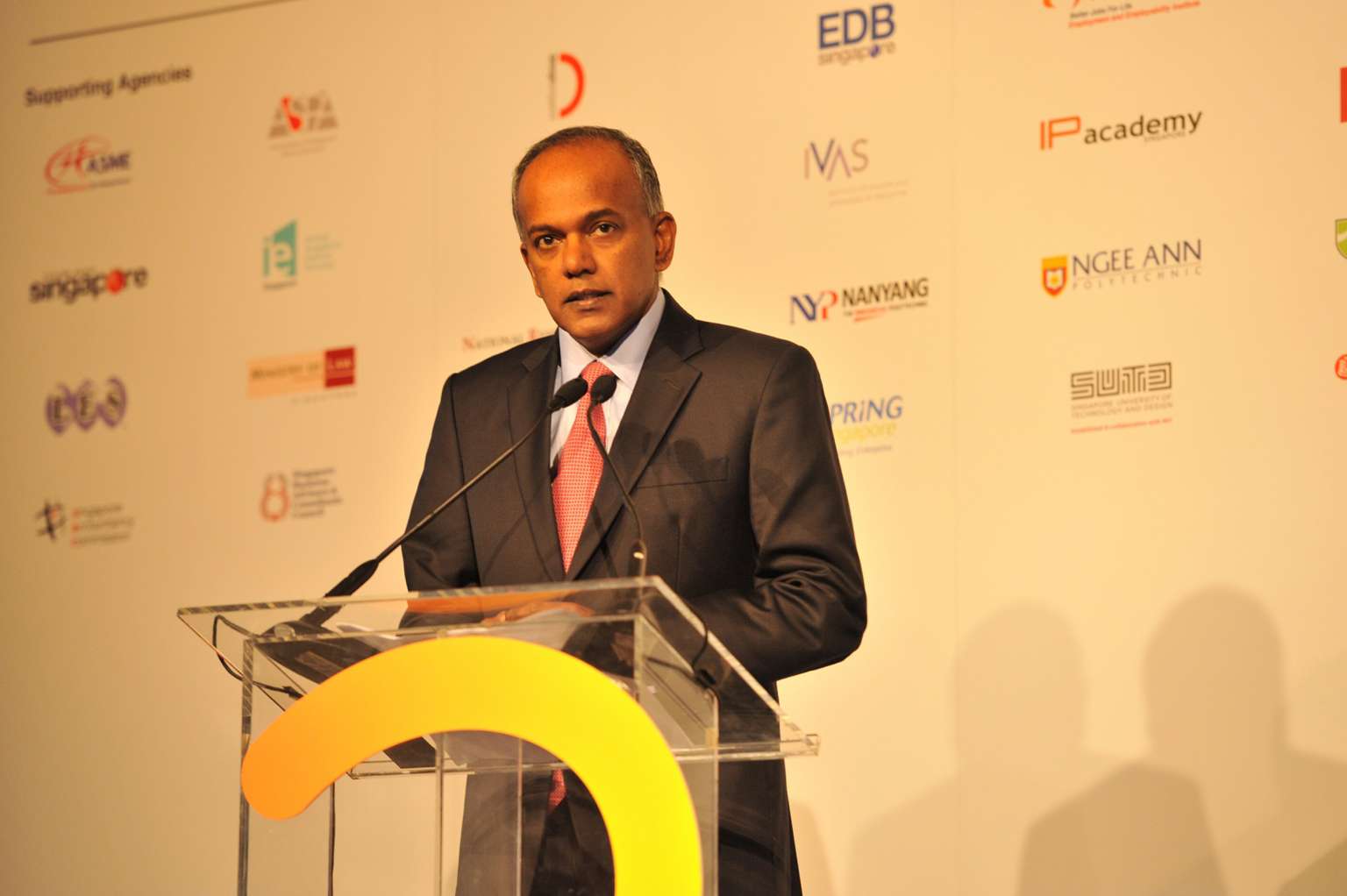 Mr K Shanmugam, Minister for Law, delivering his opening address at the IP Week @ SG at Marina Bay Sands on 26 August 2014. He announced the launch of a new unit to help businesses unlock the value of innovations.