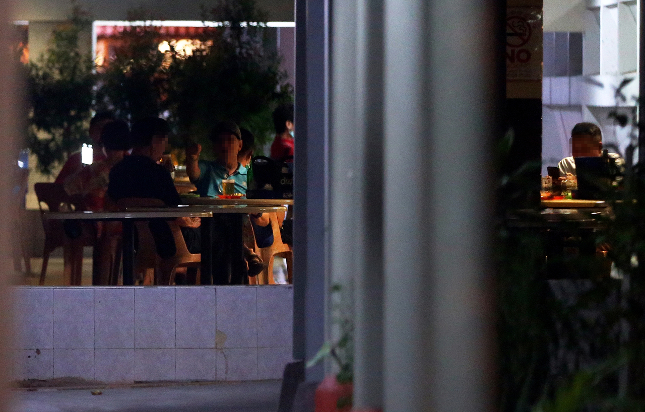 People drinking beer even after 10.30pm at a coffee shop in Hougang.