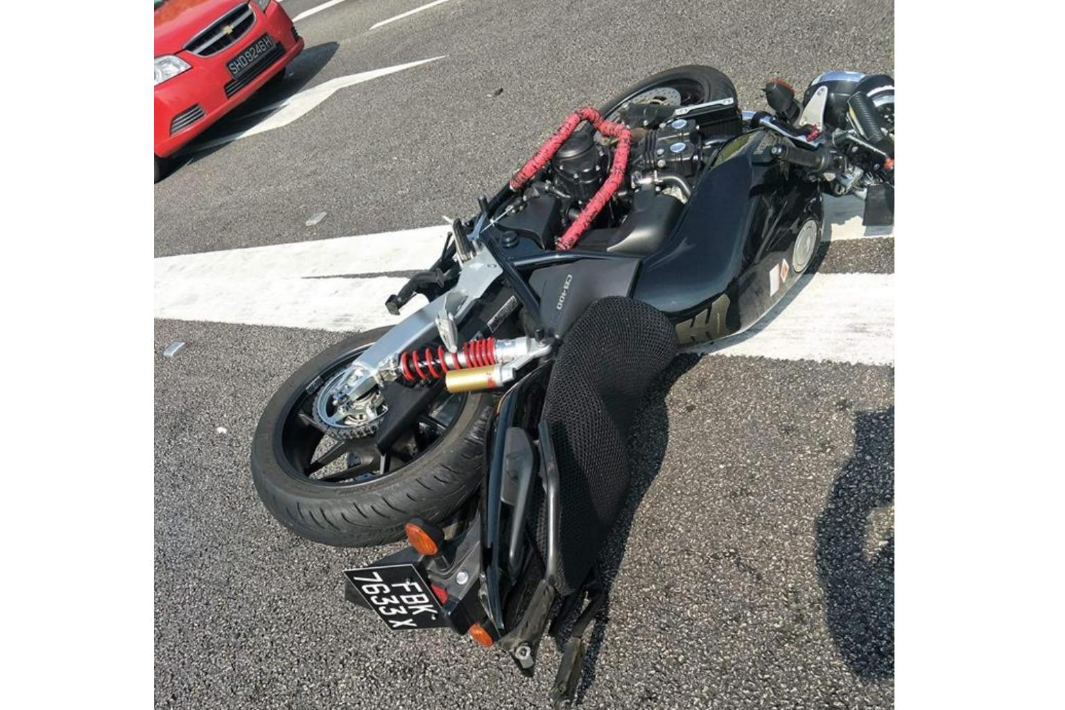 The Straits Times understands that the car had been changing lanes, and the motorcycle was unable to slow down in time.