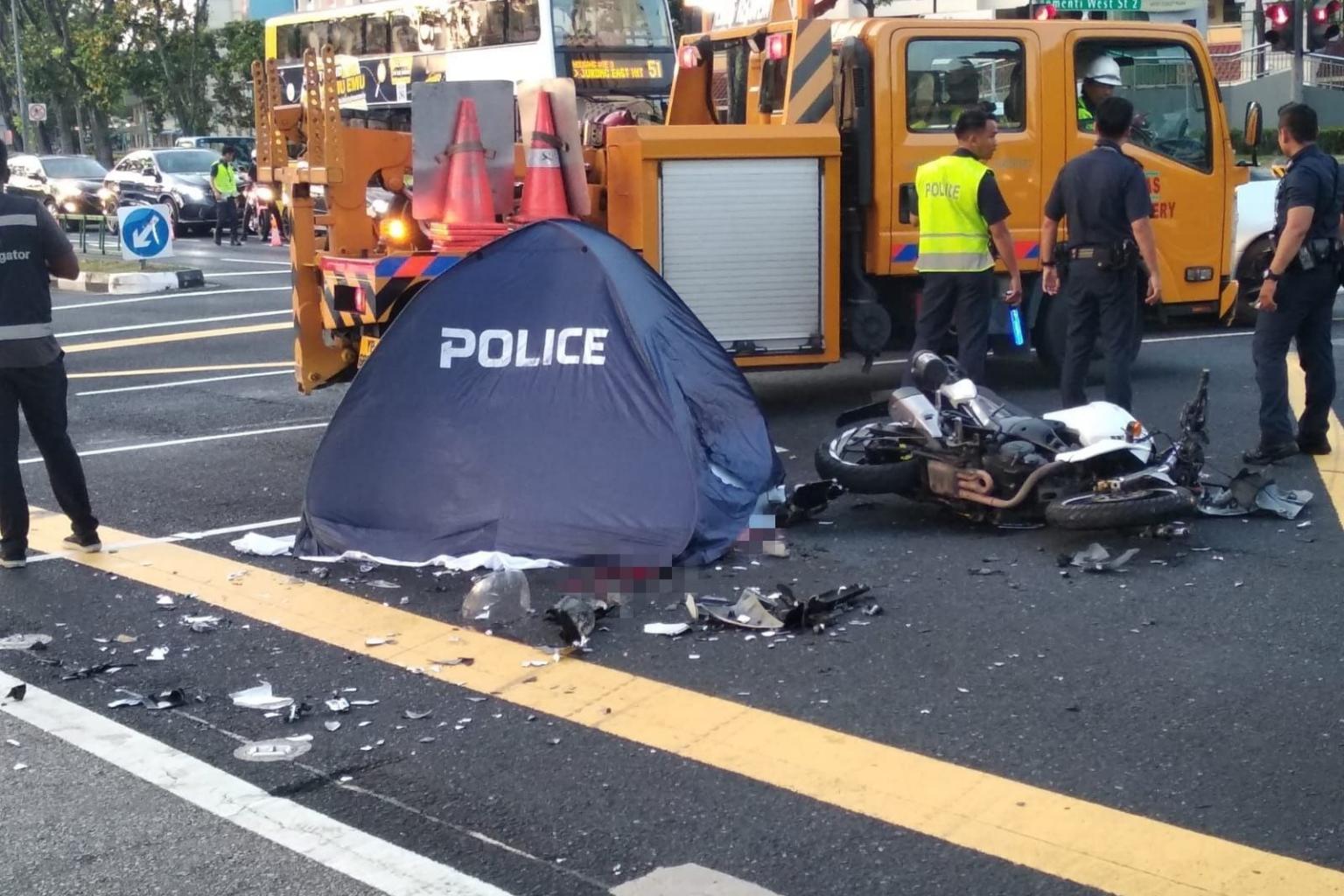 The motorcyclist was pronounced dead at the scene by a paramedic, the Singapore Civil Defence Force said.