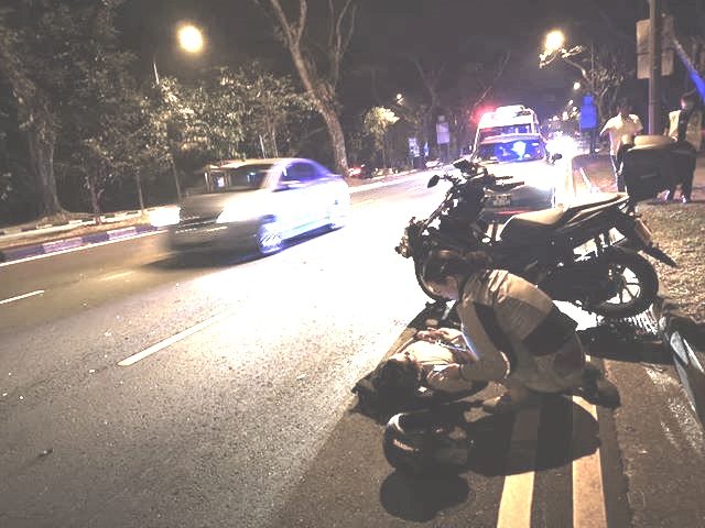 The police said they were alerted to an accident on Saturday night (Sept 21) involving a motorcycle in Upper Thomson Road towards Thomson Road at 9.23pm.