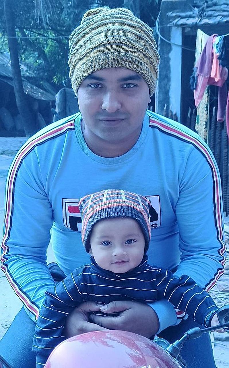Bangladeshi construction safety supervisor JM Jasim with his son Tahamidul Hasan, who turned one on May 13, in a photo taken five months ago. PHOTO: COURTESY OF JM JASIM