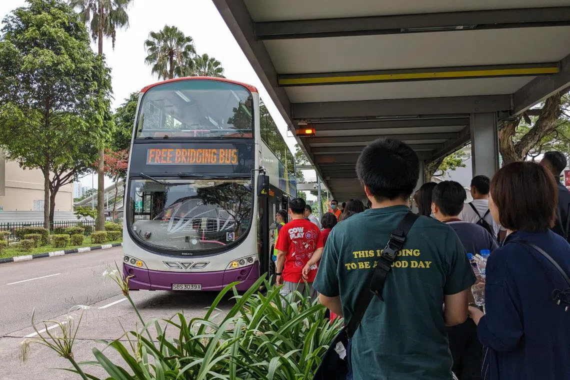 SMRT staff at Stadium station could be seen directing passengers to a bus stop nearby. This resulted in a long queue of more than 40 people waiting for the free bus services.