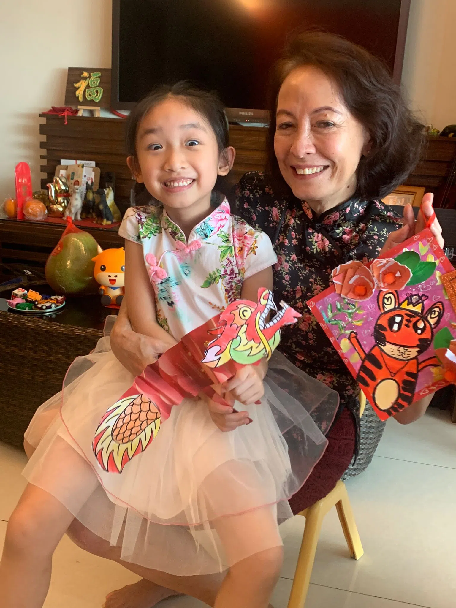 Madam Margaret van Ronk, 68, with her eight-year-old granddaughter Seraphina Lim.