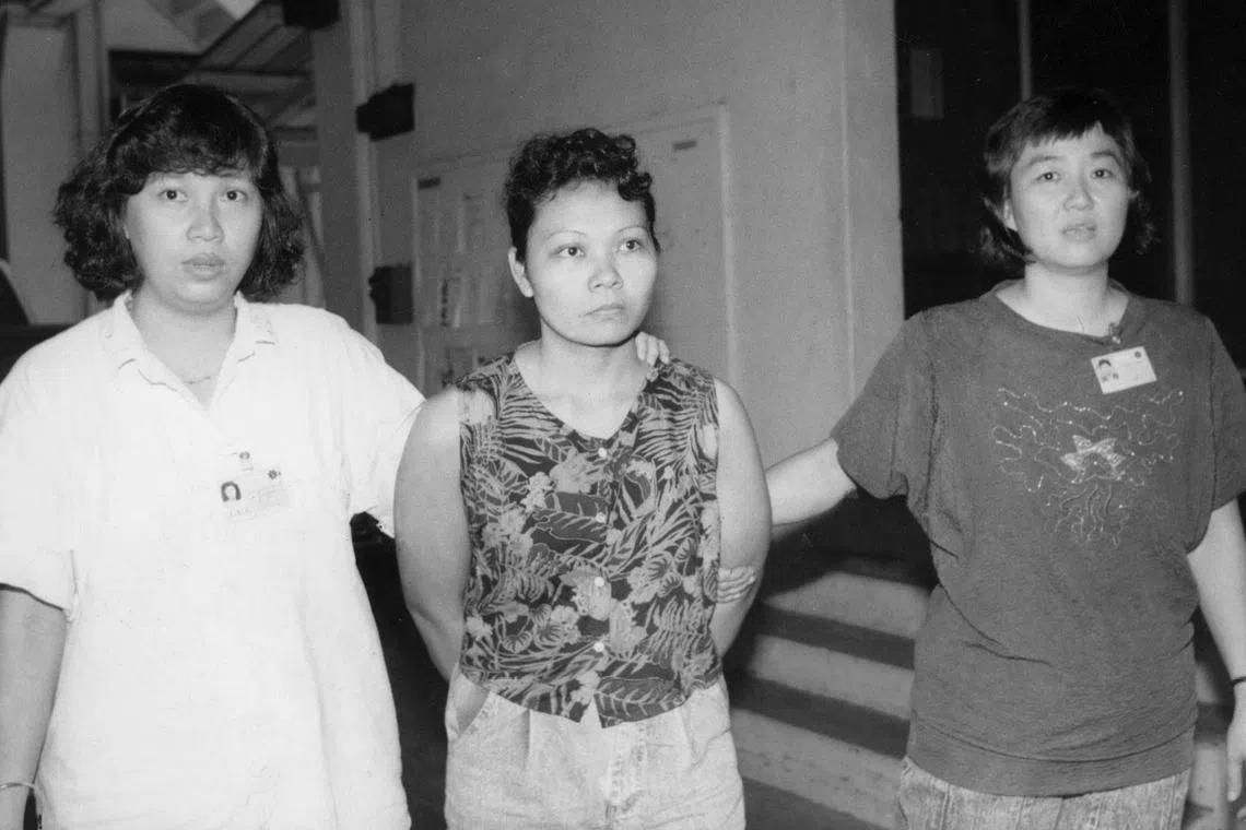 Foreign domestic worker Flor Contemplacion (centre) was hanged on March 17, 1995. She had been convicted of the double murder of a fellow Filipino helper and a four-year-old boy.