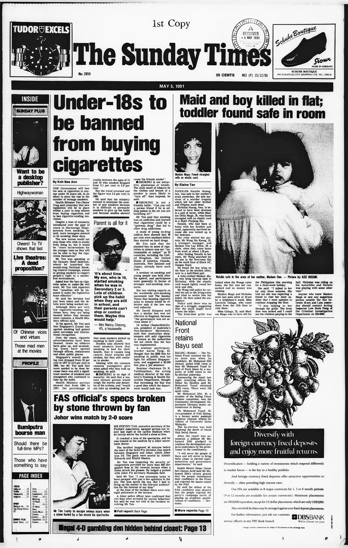 On May 5, 1991, The Straits Times reported a shocking tragedy: a couple had returned home to find their four-year-old son, Nicholas Huang, drowned in a pail of water. Their Filipino helper, Madam Della Maga, had been strangled with an elastic cord, and their two-year-old daughter, Natalie, was found locked in a room.