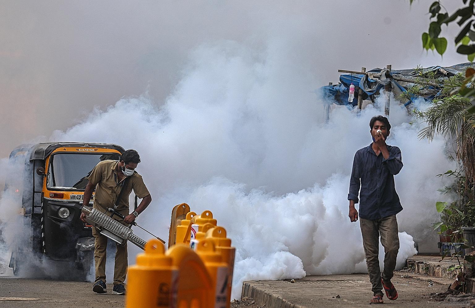 A vaccination centre in Mumbai being fumigated yesterday. The city has announced a shutdown of its vaccination drive for three days because of inadequate supplies.