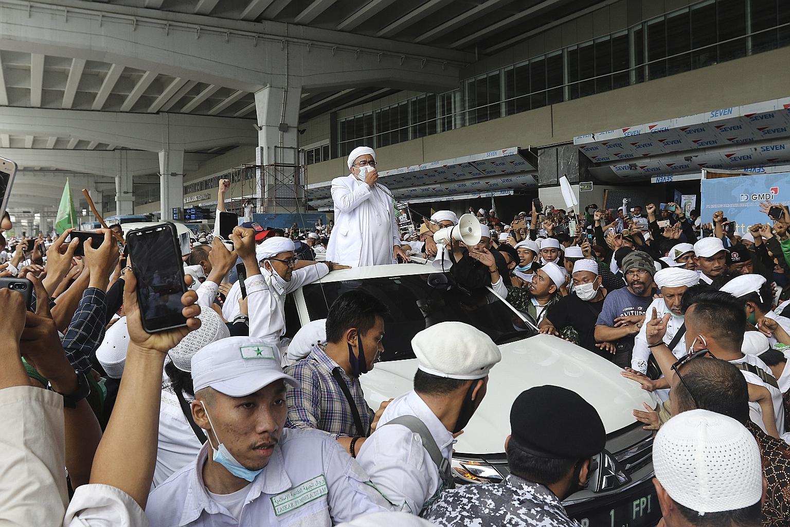 Thousands of supporters gathered at a Jakarta airport yesterday to welcome back Rizieq Shihab, a firebrand cleric and Islamist leader, who went into exile in Saudi Arabia after facing charges over sending pornographic messages and insulting state ideology. There were chaotic scenes at the airport as his supporters paralysed the toll road.