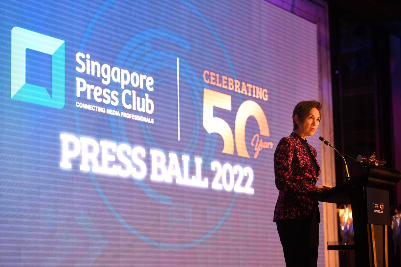 She was speaking at the Press Ball dinner marking the 50th anniversary of the Singapore Press Club, held at Orchard Hotel and attended by more than 400 media professionals and their guests.