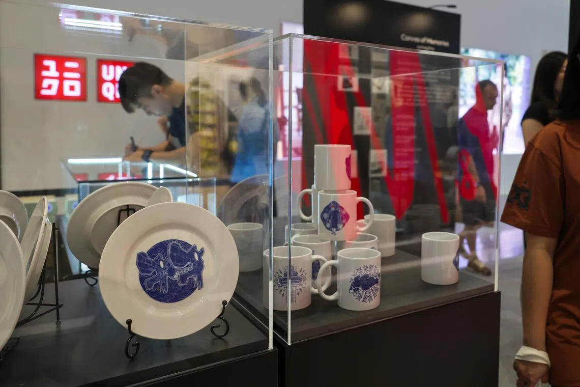 They include his blue and white series, which are inspired by ink-washed paintings of blue and white porcelain tableware, of iconic scenes and places in Singapore.