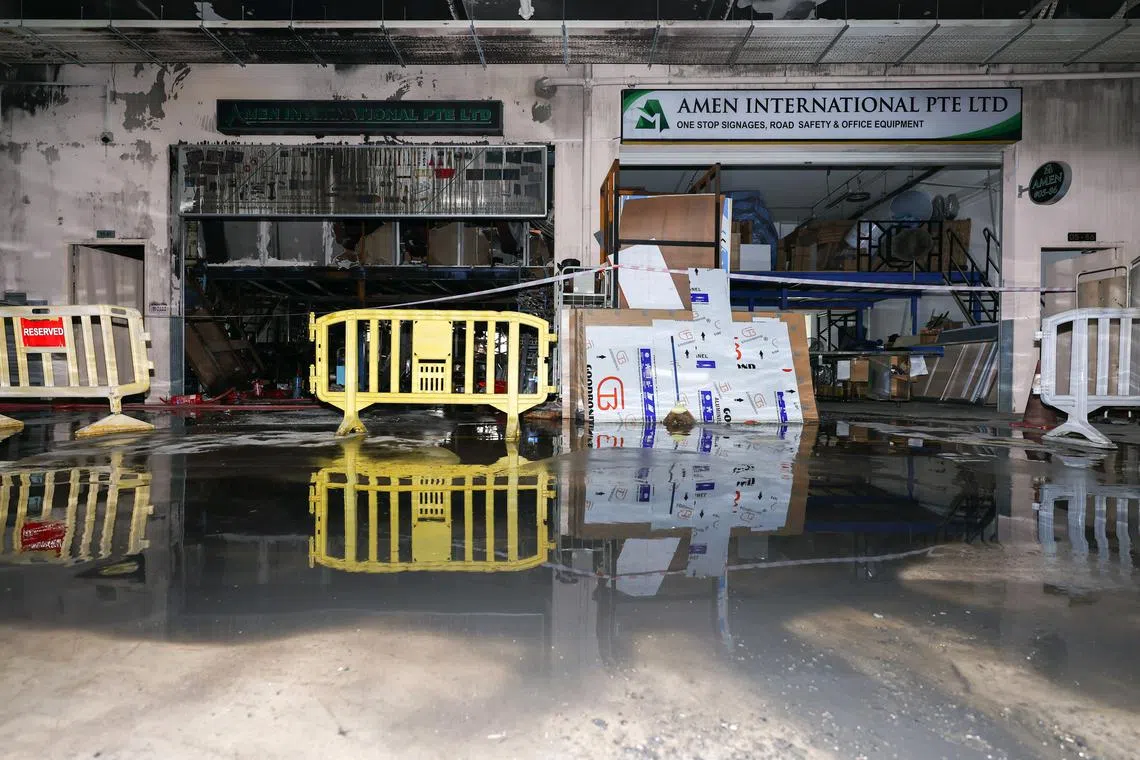 The fire ravaged signage shop Amen International on Sept 19.
