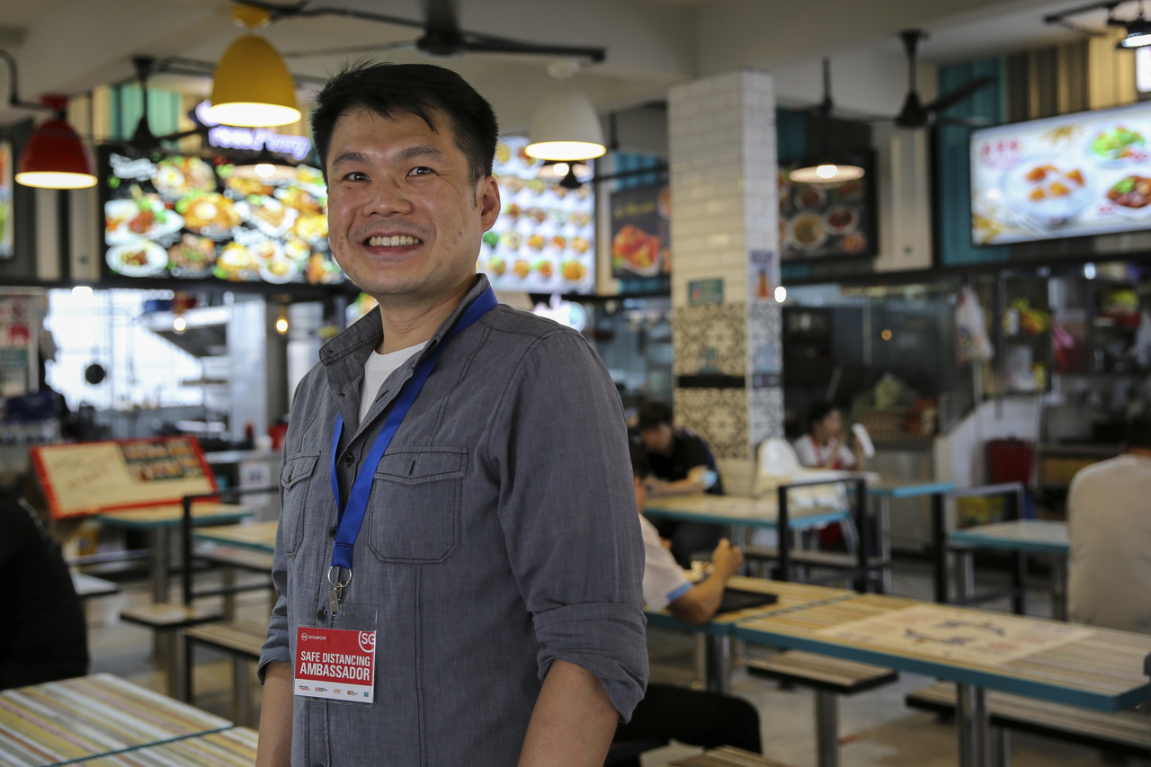 Mr Adrian Goh, who had been in the hotel industry for 12 years, is now a safe distancing ambassador.