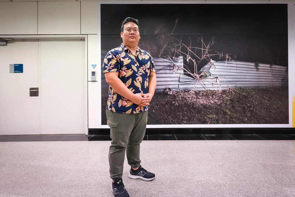 Mr Marvin Tang’s photograph of a fallen papaya tree breaking through the barricade around Tengah forest is featured on a poster in Dhoby Ghaut MRT station.