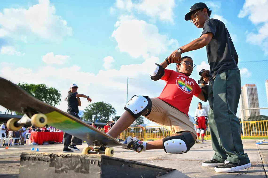 Meanwhile, in Toa Payoh, participants like Lisa Joseph mustered their courage to try skateboarding for the first time.