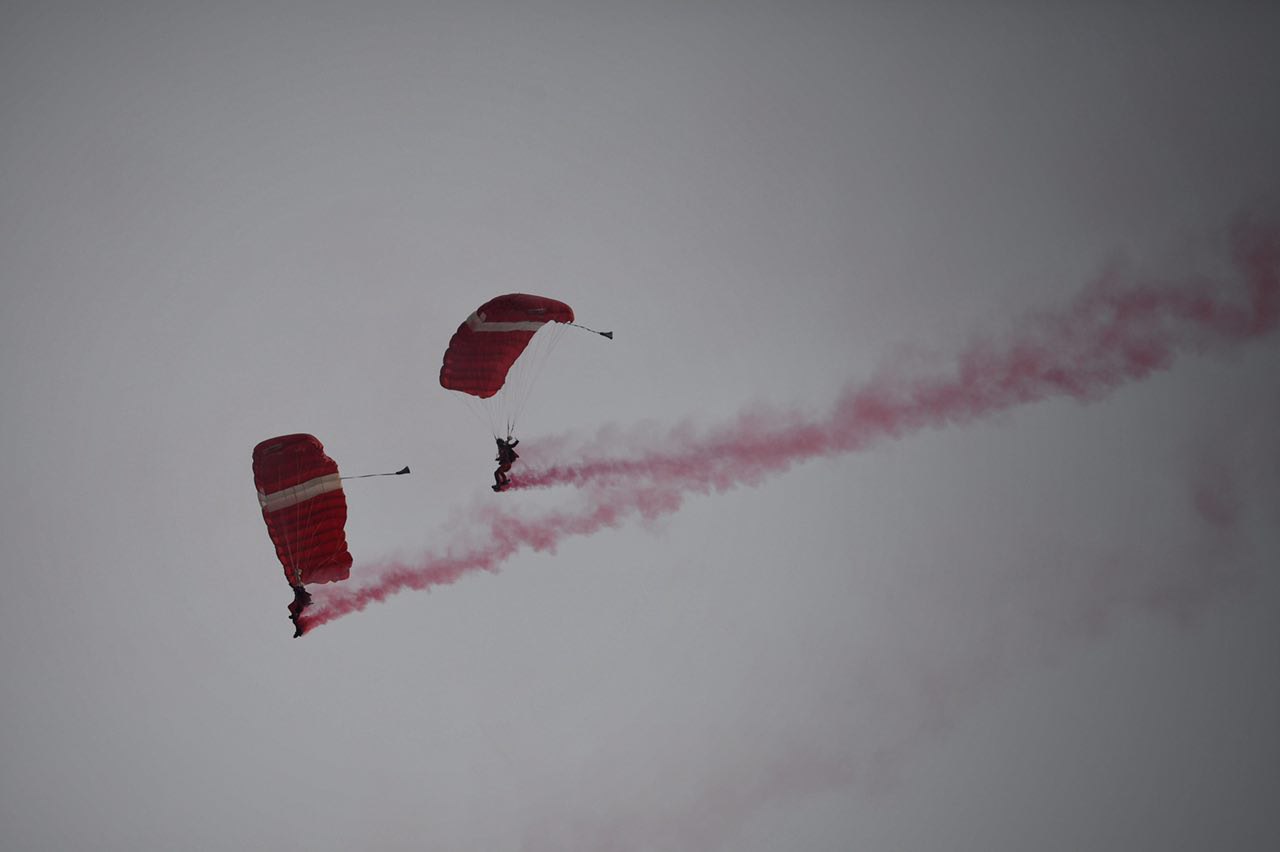 The parachutists made falling from a height of 10,000 feet look like a breeze, and were welcomed back onto solid ground to cheers from the audience.