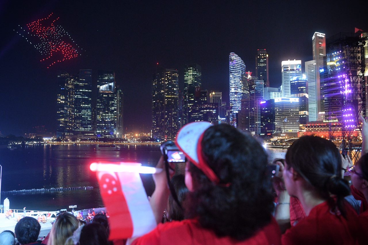 Three hundred drones took to the air at the same time, winking and dancing against the Marina Bay skyline. The Purple Symphony, an orchestra made up of people with and without special needs, also gave a rousing rendition of We Will Get There, the NDP 2002 theme song.
