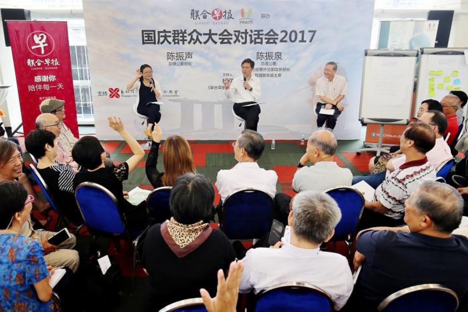 About 120 people including businessmen, clan association leaders and teachers took part in the Mandarin dialogue at the National Library Building, which was organised by Government feedback arm Reach and Chinese daily Lianhe Zaobao.
