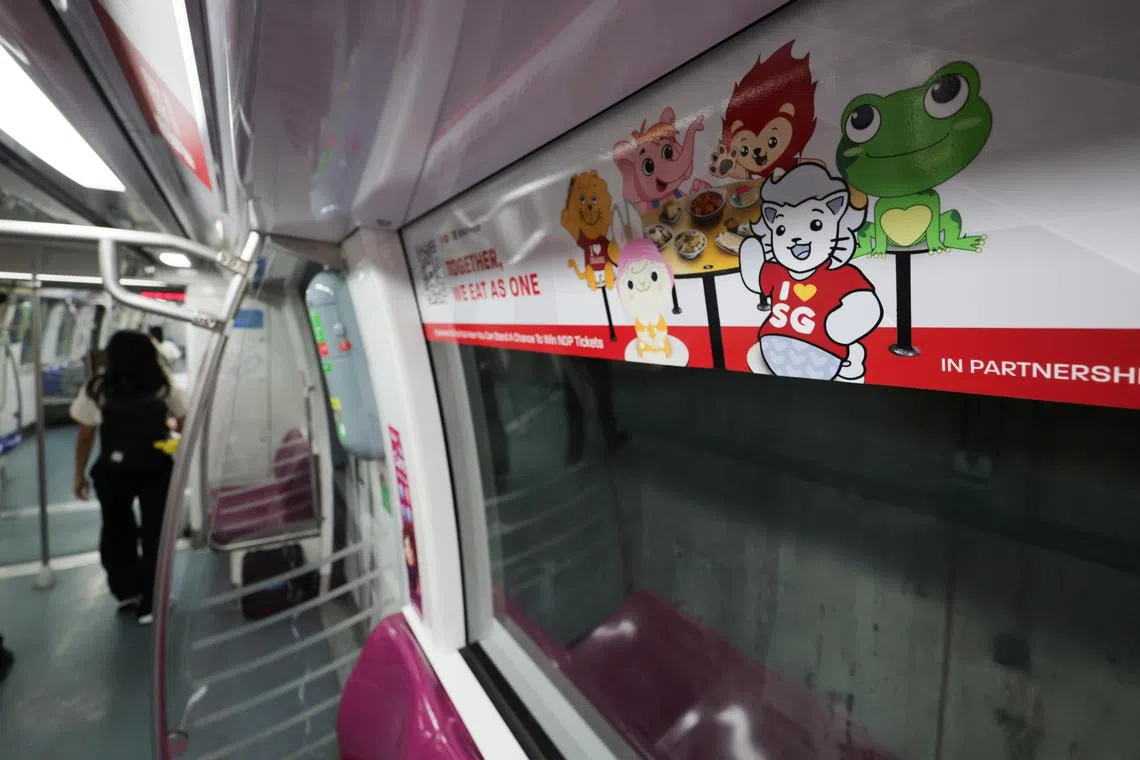 At the launch of the National Day-themed decorations on July 8 at the Circle Line’s HarbourFront station, one such train had NDP-themed stickers lining its floors, windows and carriage walls.