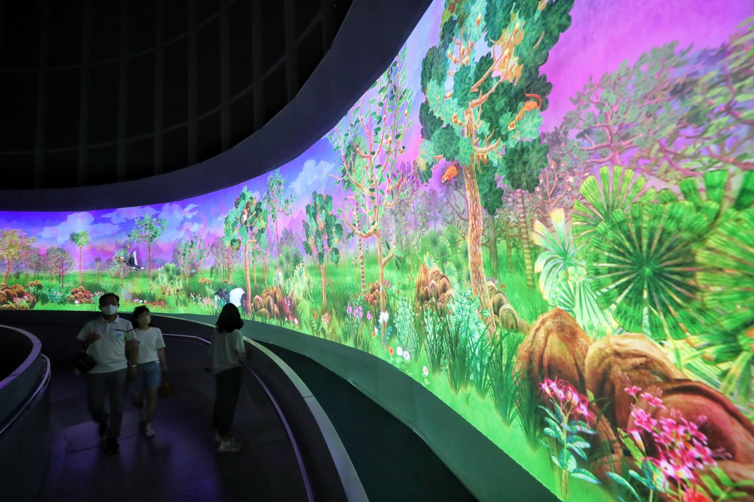 Currently, the rotunda - a 15m-tall dome that has an elevated passageway running through and around it - houses a permanent multimedia installation named Story Of The Forest, which opened in end-2016.