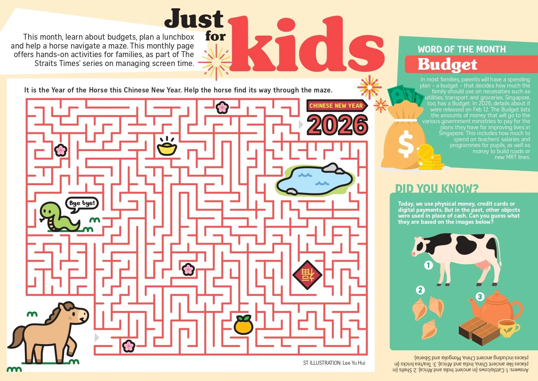 SINGAPORE – Find out what budgets are, plan a dream lunchbox and help a horse navigate a maze in The Straits Times’ February weekend activity page for young families.