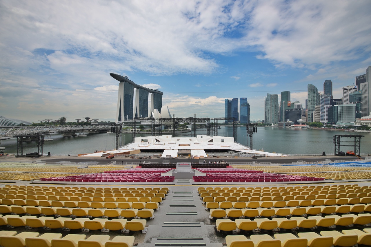 The stage on water holds advantages over other venues like Sports Hub as it can quite easily combine land, air and sea elements. Live audiences would, for instance, find it more difficult to view aerial displays at Sports Hub.