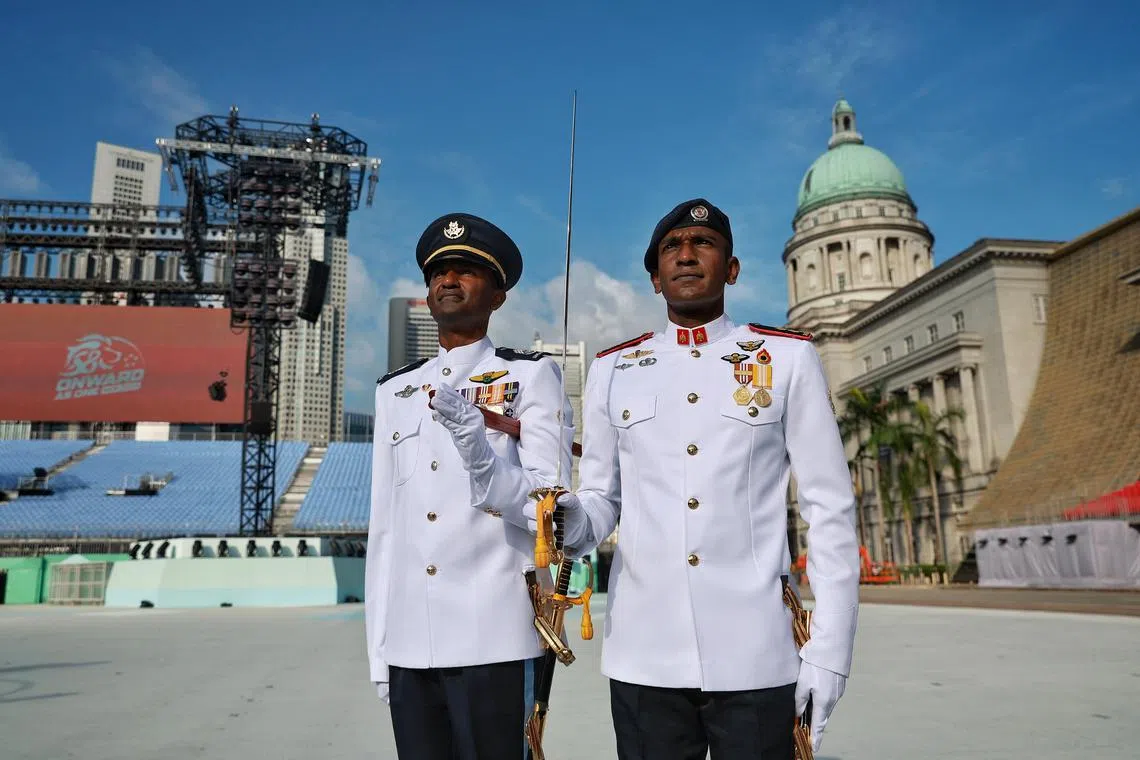 LTC Ragumaran Davindran (right), 38, is this year’s NDP parade commander. MWO Pandykumaran Arthiappan (left), 45, will be joining him as the parade regimental sergeant major.
