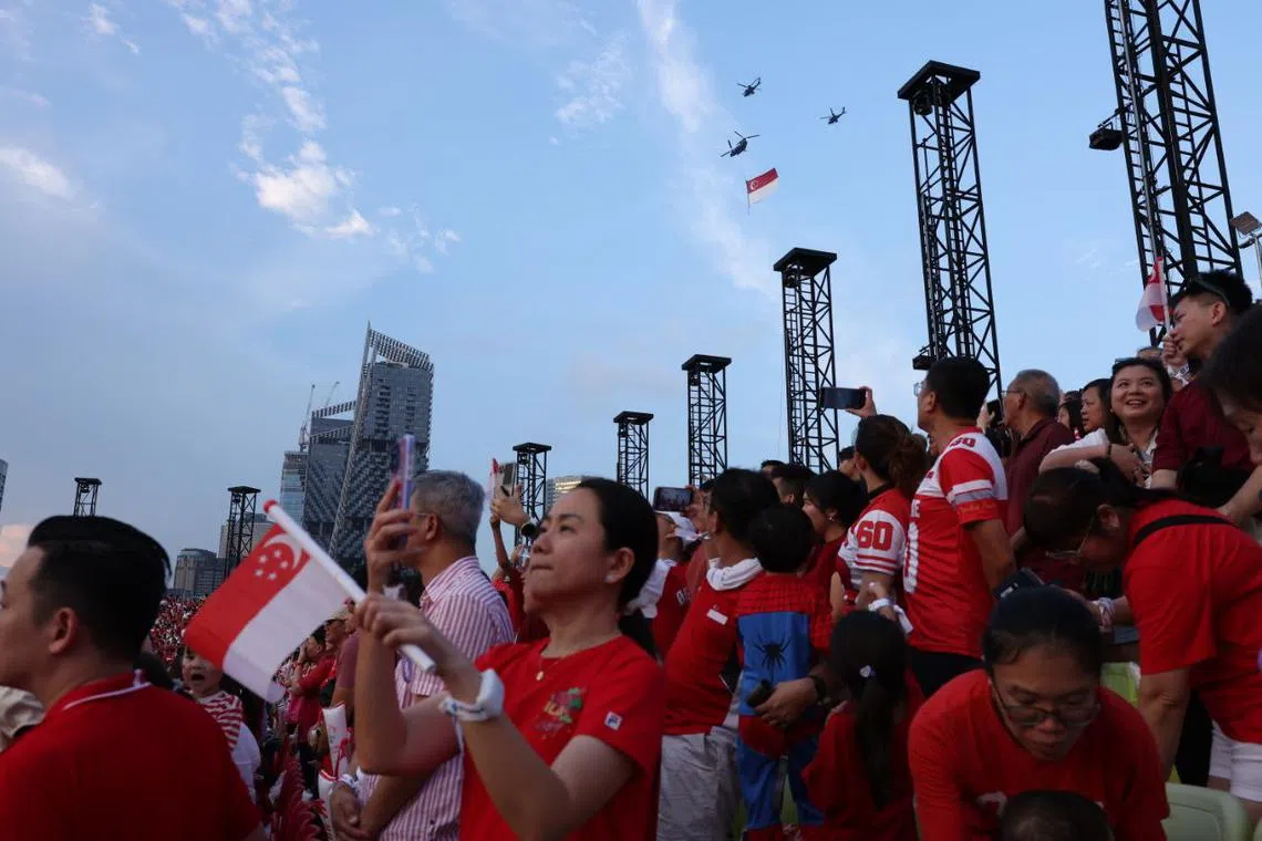 SINGAPORE - Eyes turned skywards as fighter jets roared above the packed Padang, sending a ripple of excitement through the crowd.