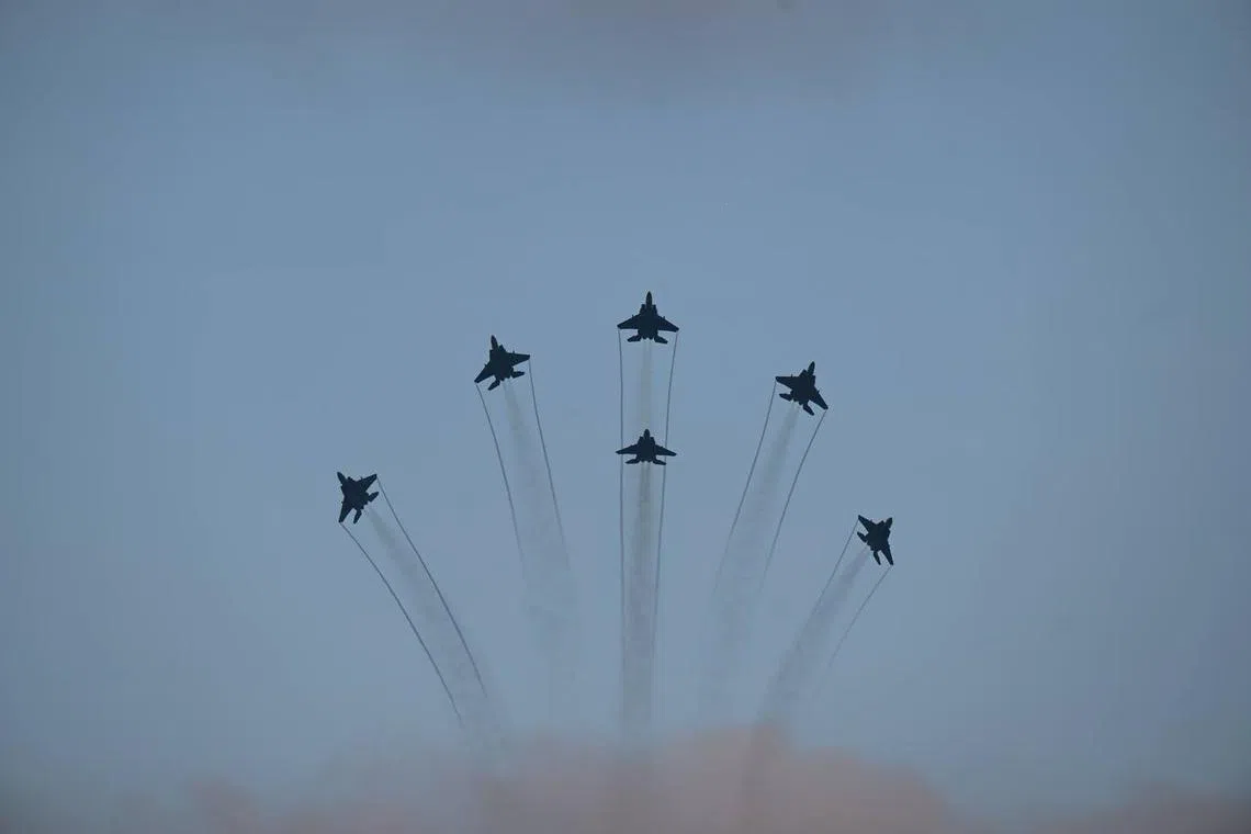- The aerial spectacle included the State Flag Flypast, arrowhead formations, jet peel-offs, and a diamond cross turn manoeuvre by fighter jets.
