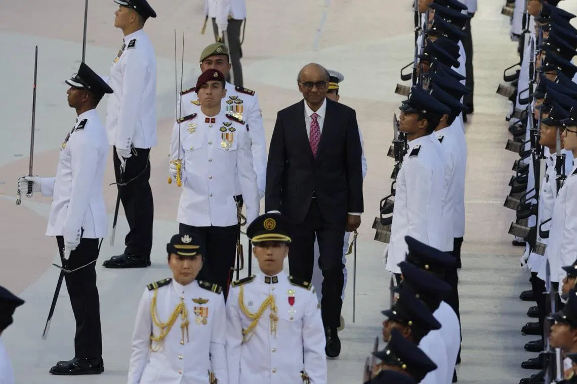 Even from Marina Bay, spectators could witness the pomp and ceremony of the NDP show. At about 6.40pm, four 25-pounder guns on a raft in the bay fired 21 times in a salute to President Tharman Shanmugaratnam as he reviewed the parade at the Padang.