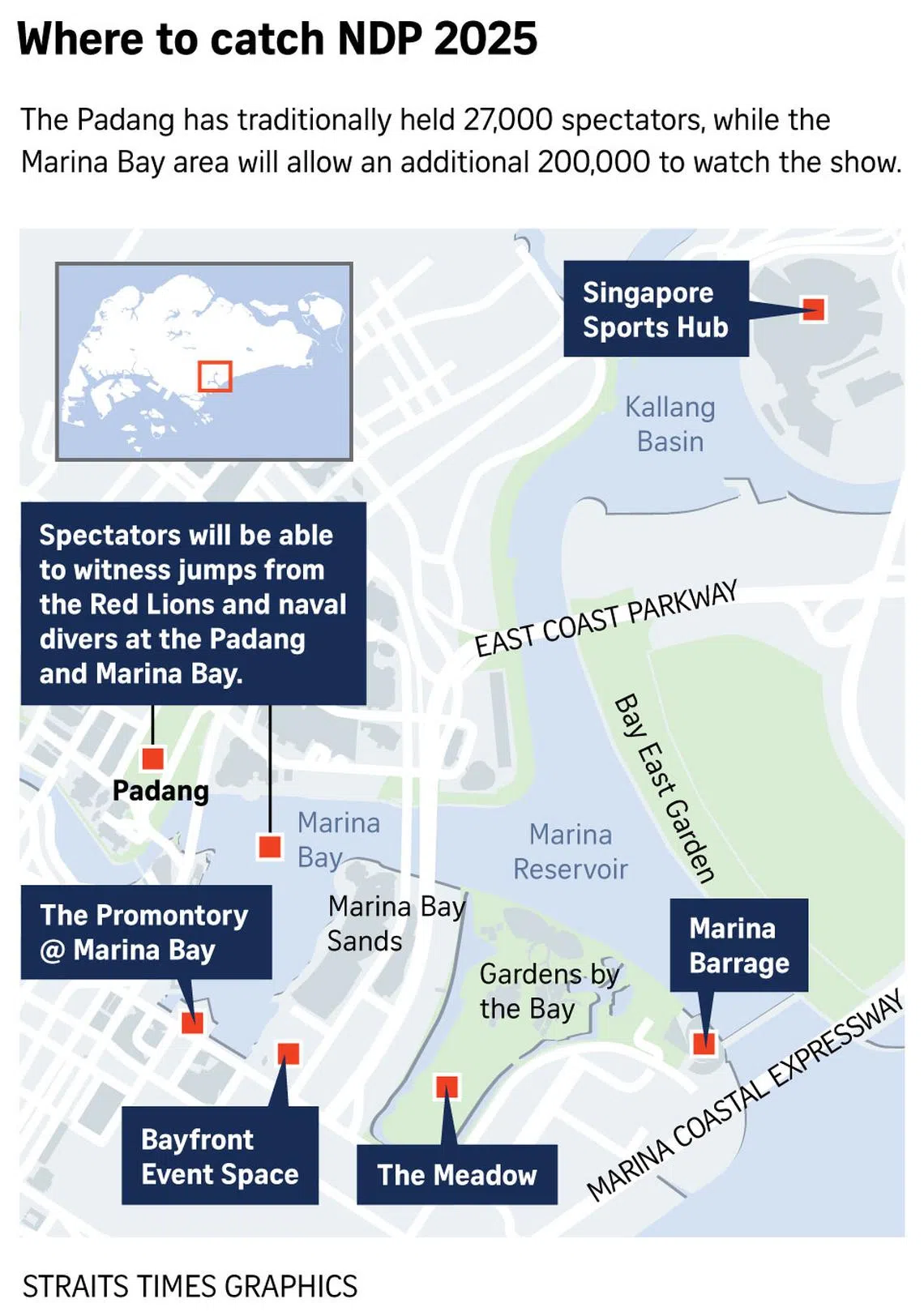 One key highlight of NDP 2025 is the show’s expansion from the Padang to the Marina Bay area.