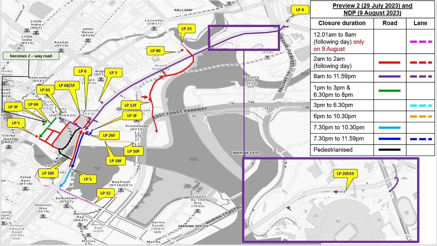 The following roads and lanes will be closed from 2am on Aug 9 to 2am on Aug 10: