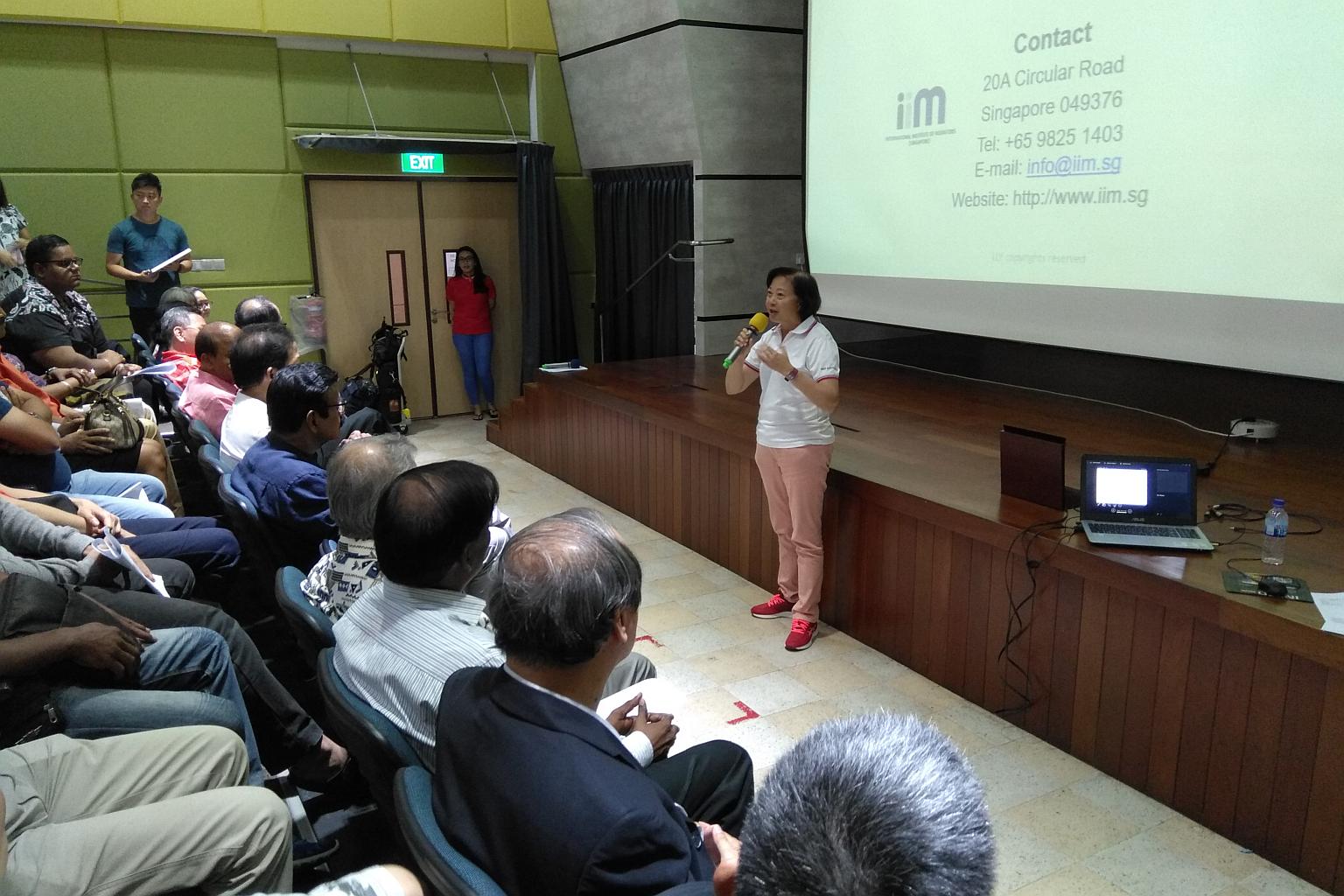 Dr Lee Bee Wah speaking to grassroots leaders after the mediation training.