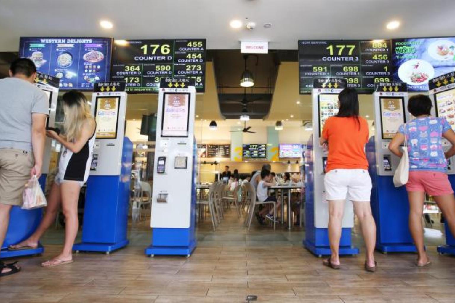 Patrons ordering food from kiosks at the entrance of the FoodTastic coffee shop in Choa Chu Kang Avenue 1.