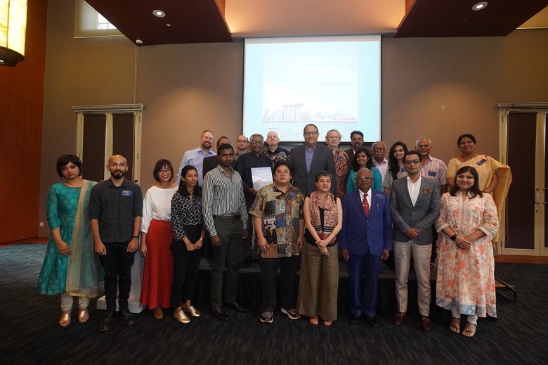 Minister for Communications and Information S Iswaran (centre) with editors and contributors of "From Sojourners to Settlers - Tamils in Southeast Asia and Singapore" and staff from The Indian Heritage Centre.