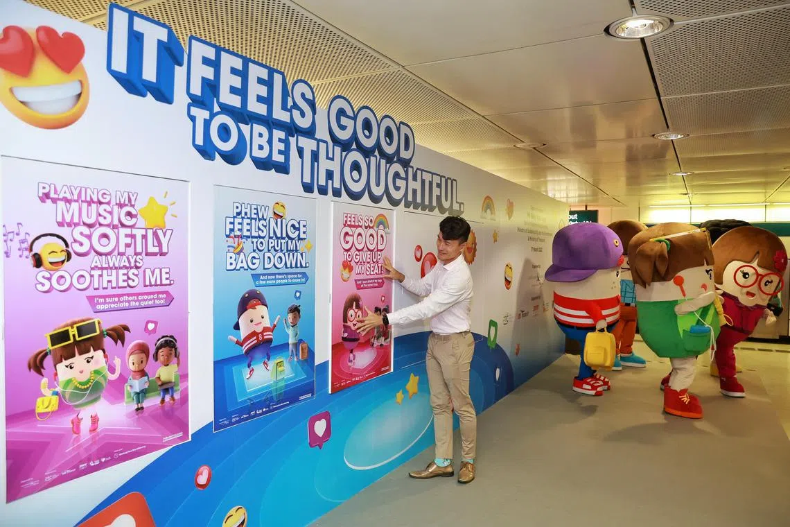 SINGAPORE - Commuters will be urged to be more thoughtful towards others when taking public transport via new posters rolled out at places such as sheltered walkways, MRT stations and selected buses.
