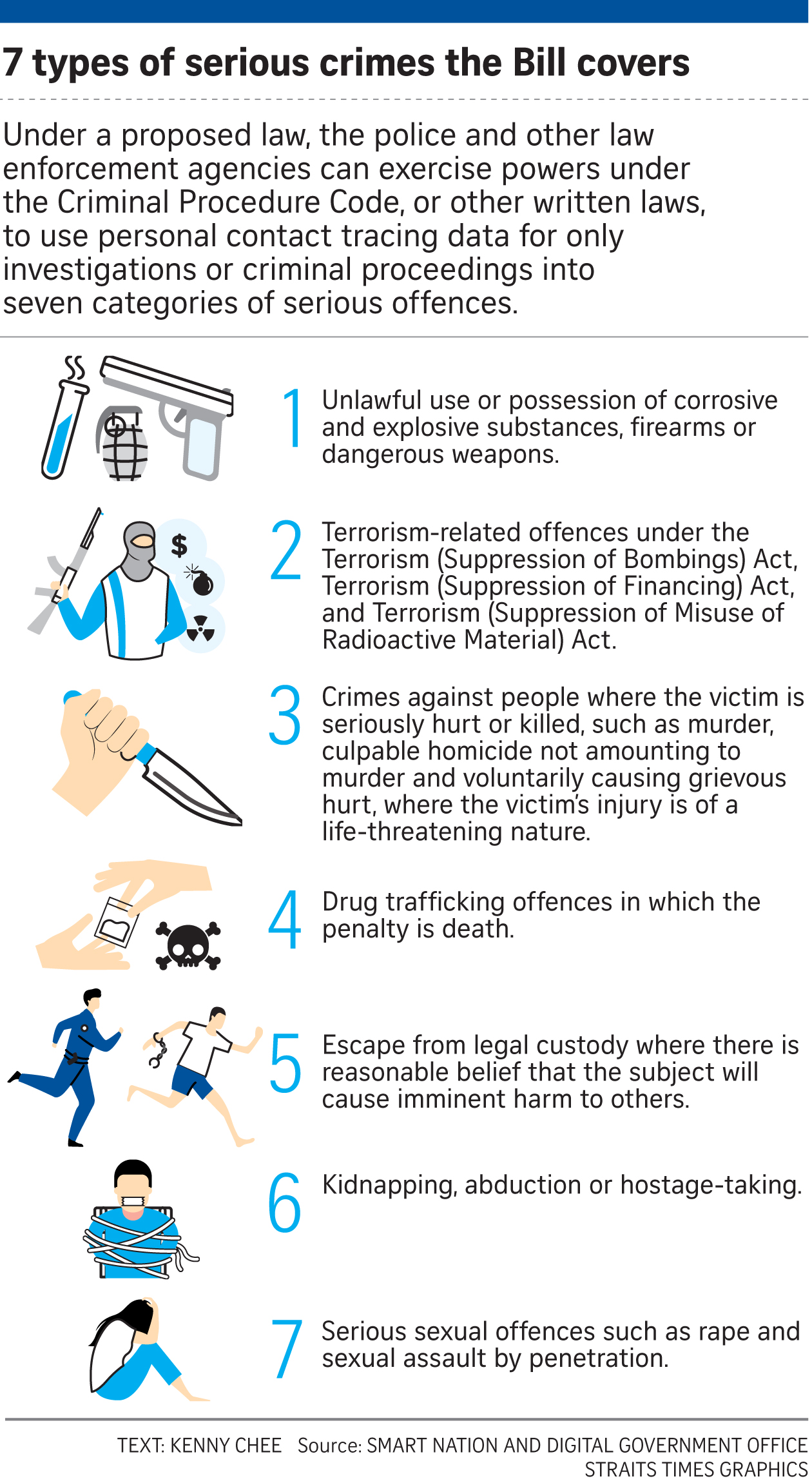 The seven types of serious crime listed in the Bill cannot be changed without Parliament's approval. The Ministry of Home Affairs said that within the police, all requests for contact tracing data must be approved by the Criminal Investigation Department.
