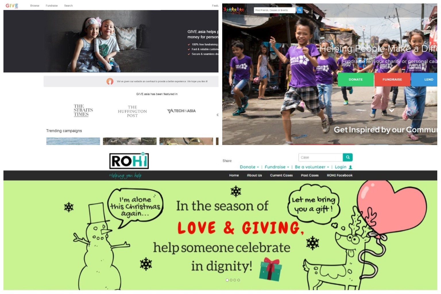 PHOTO: SCREENGRAB FROM GIVE.ASIA, SIMPLY GIVING.COM AND ROHI.SG