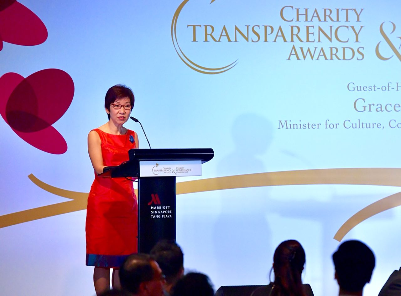 Minister for Culture, Community and Youth Grace Fu addressing the guests at the Charity and Transparency Awards at the Marriott Hotel on Nov 15, 2017.