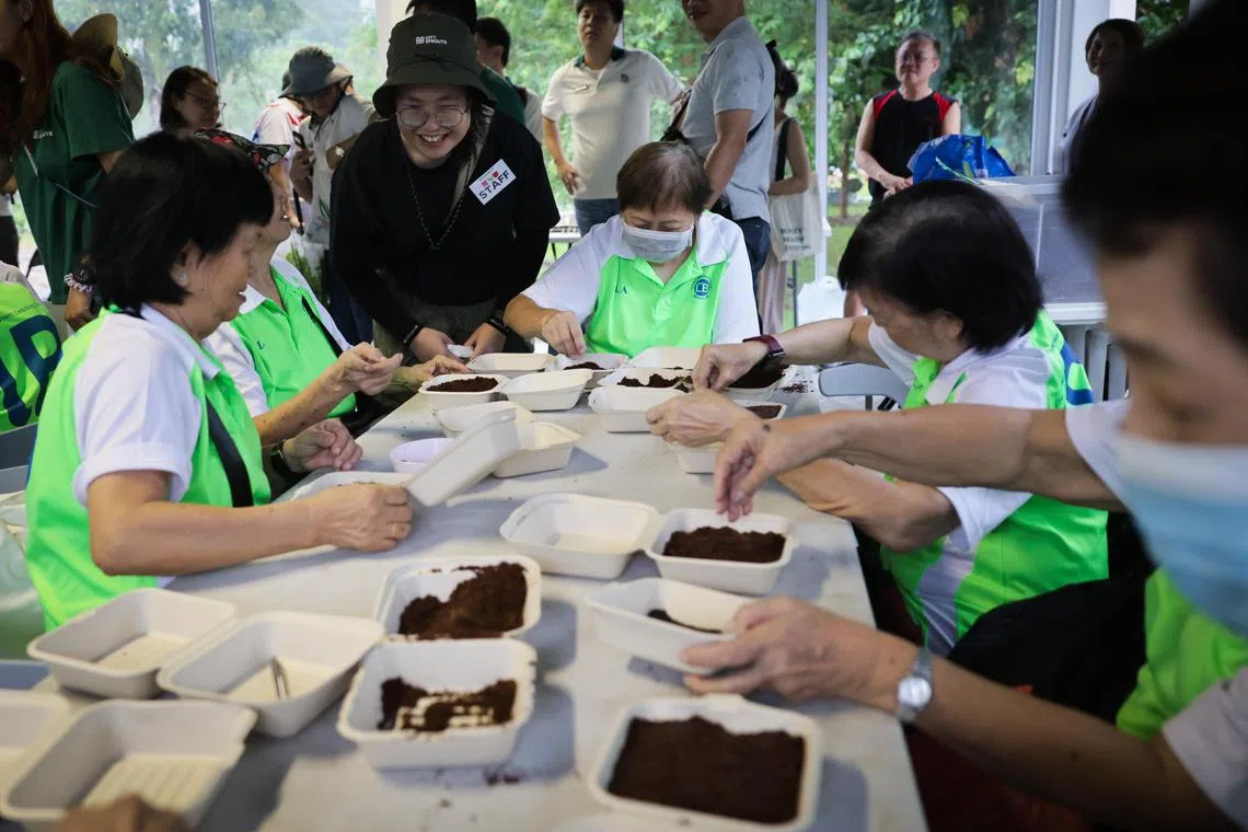 City Sprouts programme coordinator Lee Rui Tong conducting a therapeutic horticulture workshop for seniors from Lions Befrienders.