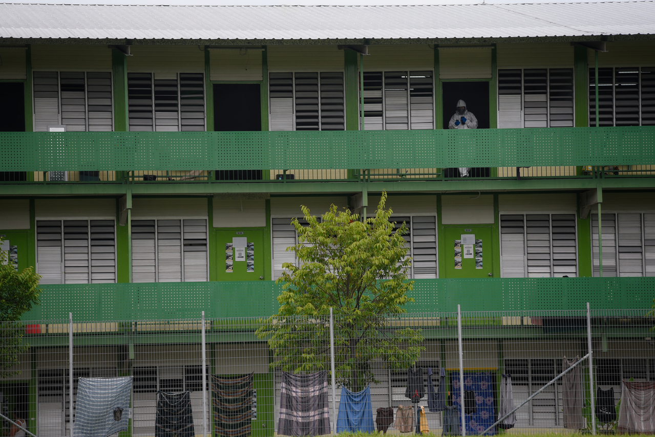 The majority of the Covid-19 cases here are work permit holders residing in foreign worker dormitories.