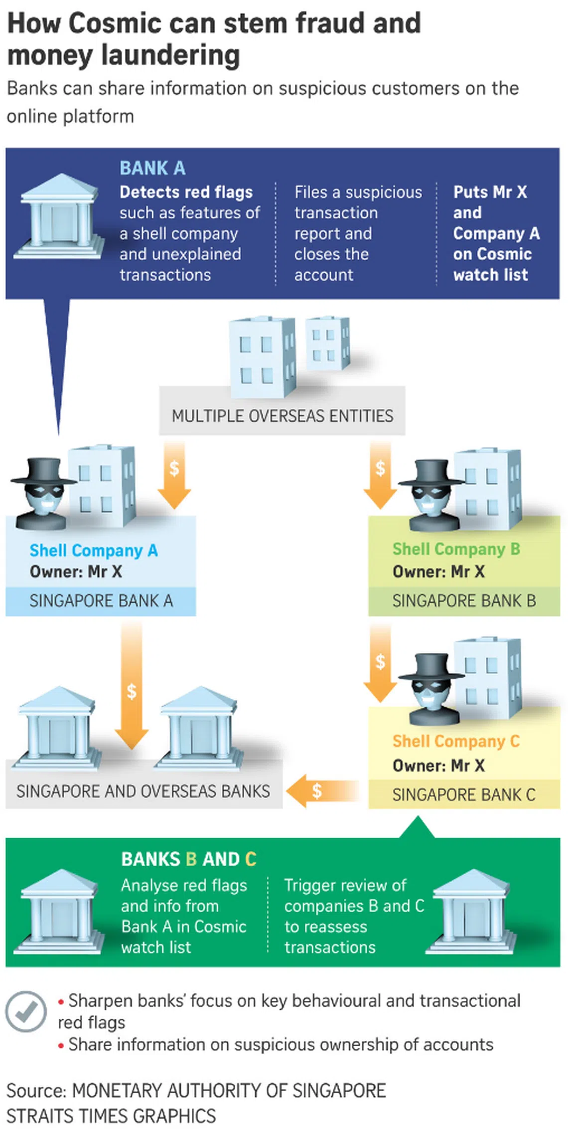 The Monetary Authority of Singapore (MAS) said in a press release that day that the intent of Cosmic, which stands for Collaborative Sharing of Money Laundering/Terrorism Financing Information and Cases, is to aid the global fight against money laundering, terrorism financing and proliferation financing, which includes the financing of weapons of mass destruction.