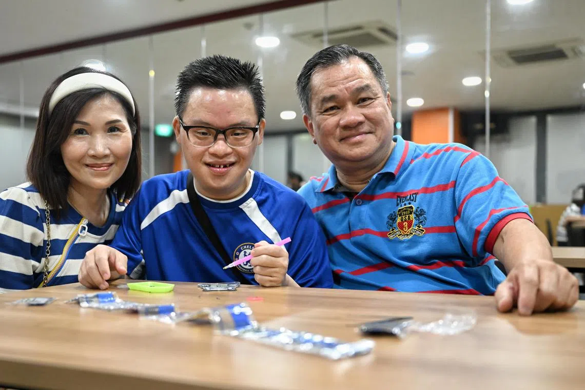 Mr Shawn Lin, 34, who has Down syndrome, with his parents at ESH@Tampines on Monday.