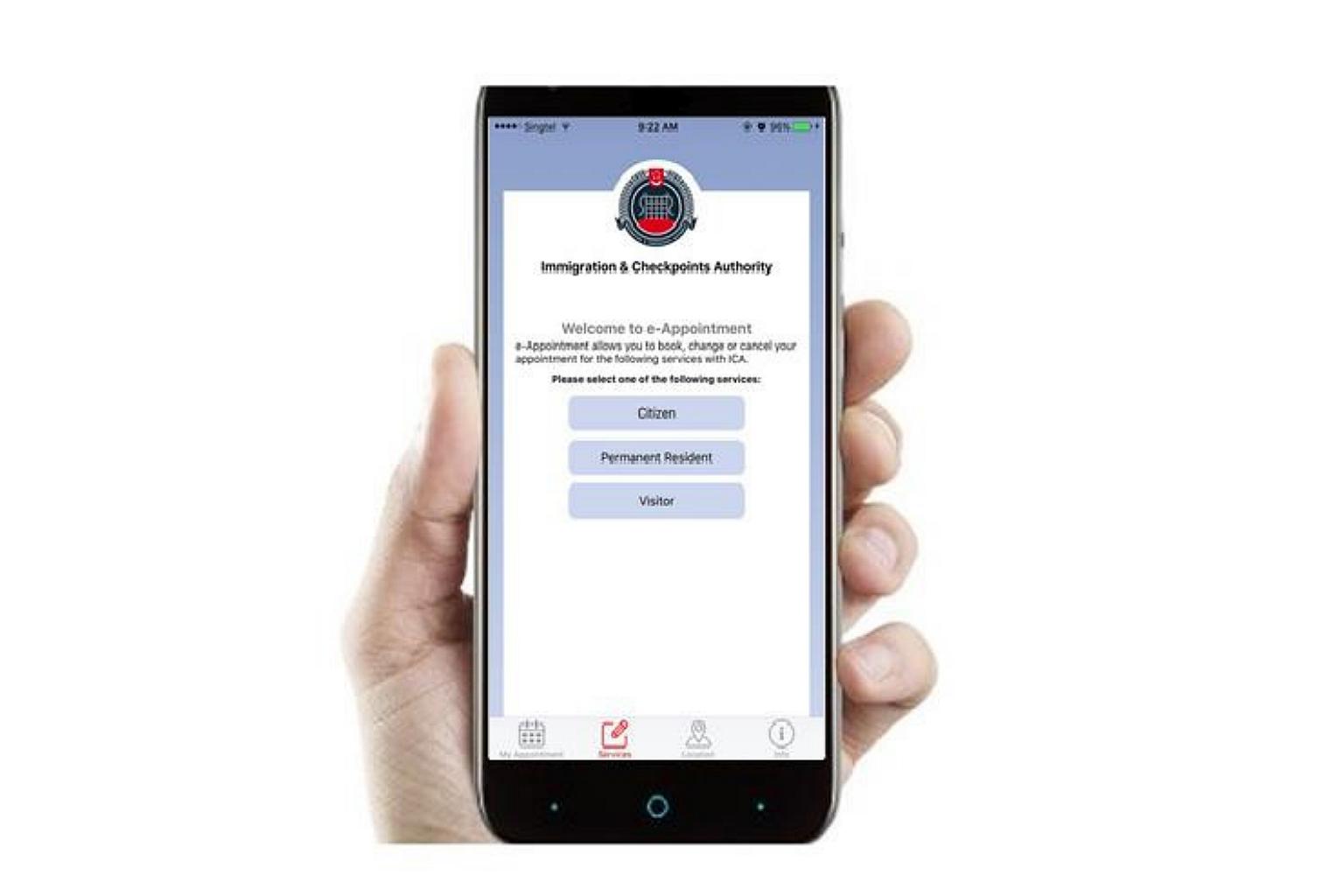 SINGAPORE - The Immigration and Checkpoints Authority (ICA) on Monday (March 7) launched a new mobile app to complement the existing e-Appointment service on its website.