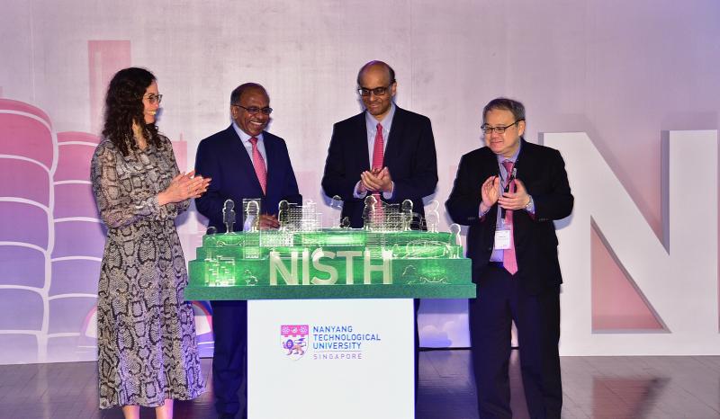 (From left) Professor Vanessa Evers, professor of computer science at the University of Twente's Human Media Interaction group in The Netherlands, Professor Subra Suresh, president of Nanyang Technological University (NTU), Deputy Prime Minister Tharman Shanmugaratnam and Mr Peter Ho, chair of the NTU Institute of Science and Technology for Humanity (NISTH) international advisory board at the launch of NISTH on March 11, 2019.