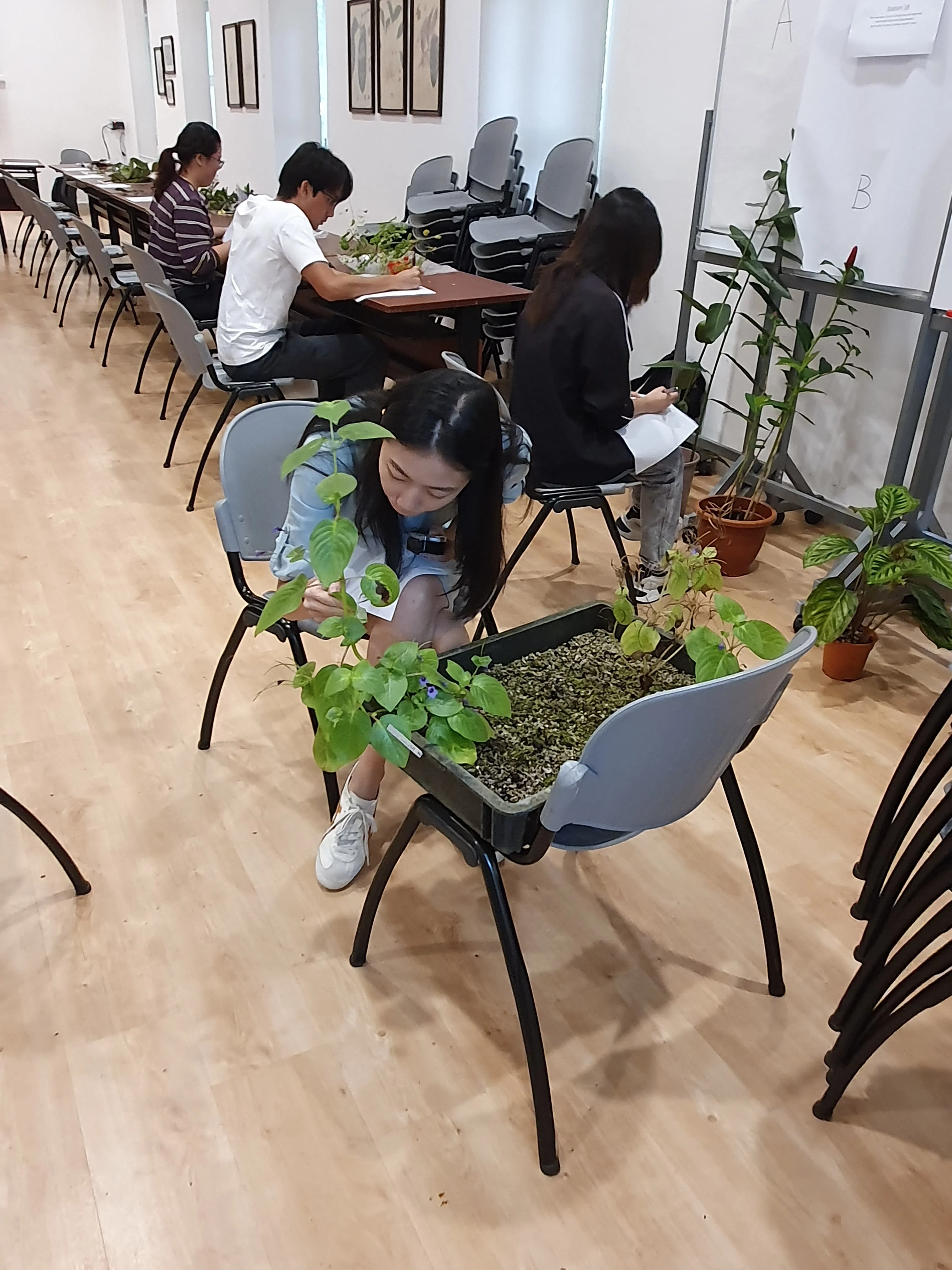 NUS students taking a practical exam at the Singapore Botanic Gardens.