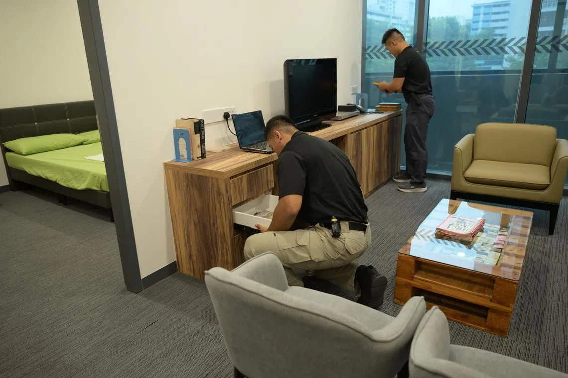 The training facility also allows SecCom to create hotel-room scenarios, where officers are taught to scrutinise everything as they look for hidden recording devices or potential threats in the room.