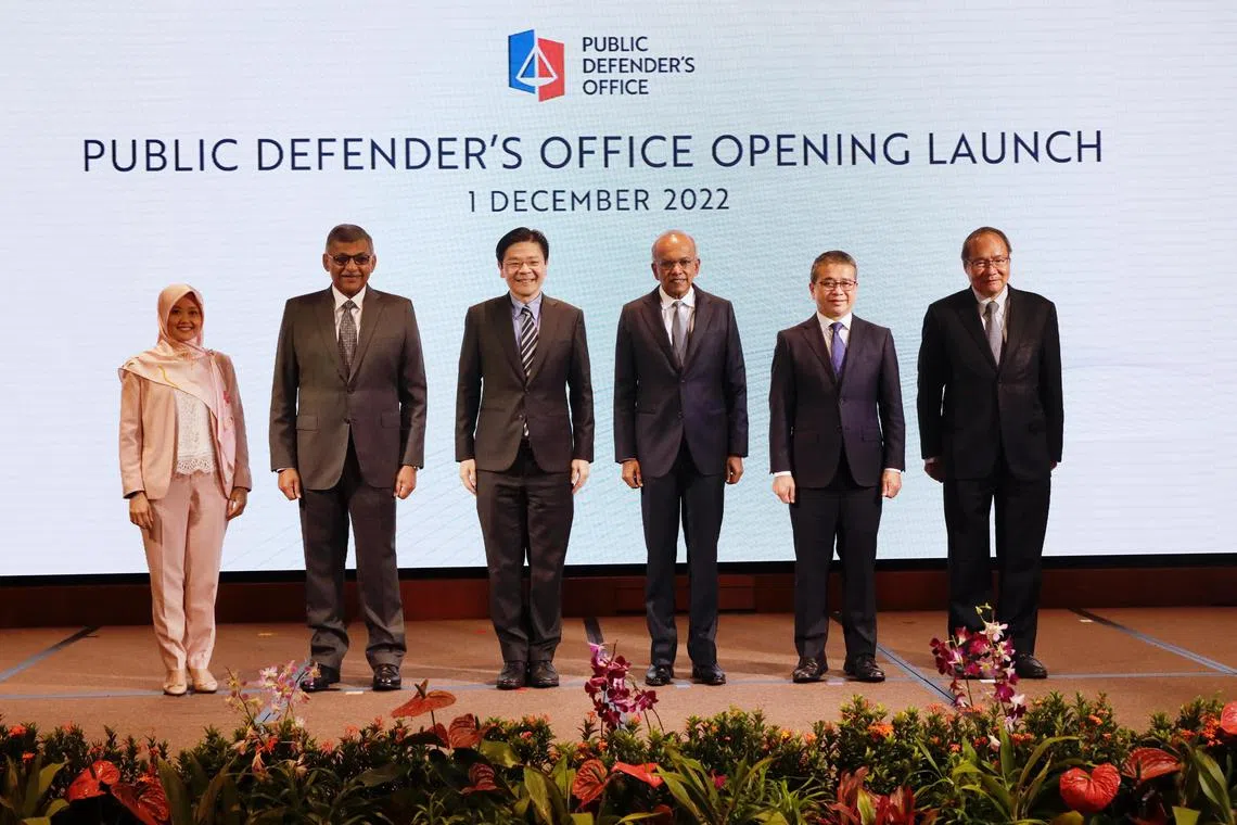 (From left) Senior Parliamentary Secretary for Law Rahayu Mahzam, Chief Justice Sundaresh Menon, DPM Lawrence Wong, Minister for Law K. Shanmugam, Second Minister for Law Edwin Tong and Attorney-General Lucien Wong at the launch of the Public Defender’s Office on Dec 1, 2022.
