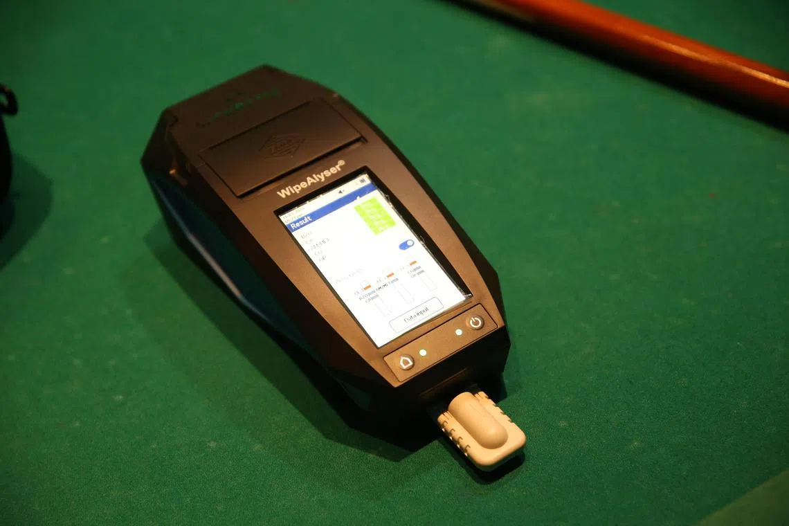 Unlike previous operations, where suspects were taken back to CNB for urine tests, only those who test positive on the saliva kit are detained for further investigation.