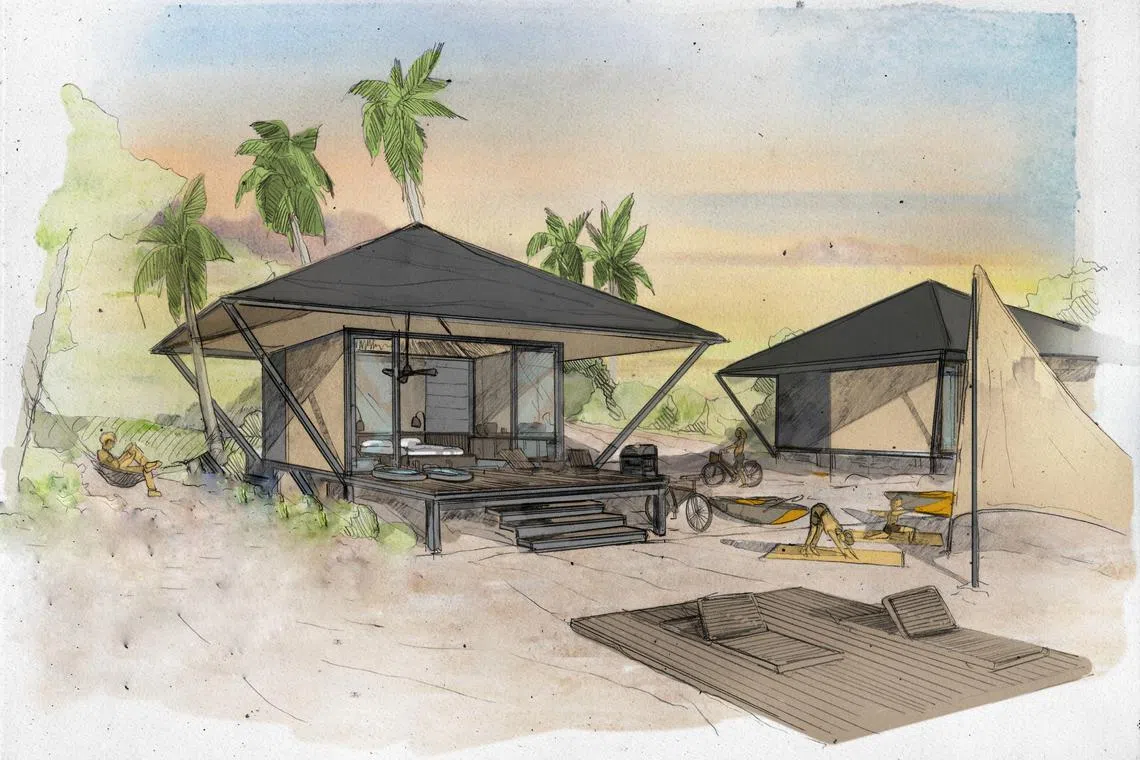 Into The Woods co-founder Ray Lee said the tents will be permanent structures, with each “essentially an air-conditioned hotel room, without an en suite bathroom, right by the beach”.