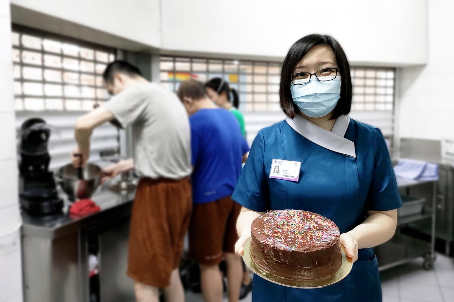 About five patients were identified and trained to bake celebration cakes for patients' birthdays in five in-patient wards. Through the initiative, the participants learnt to follow instructions and work together towards a shared goal.